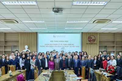Chiều ngày 22/01/2026, Trường Đại học Luật, Đại học Quốc gia Hà Nội tổ chức Hội thảo khoa học “Khoa học pháp lý tố tụng hình sự trong tiến trình cải cách tư pháp tại Việt Nam”. Đây là sự kiện học thuật quy tụ đông đảo các chuyên gia đầu ngành, các nhà khoa học có vị thế học thuật cao không chỉ trong lĩnh vực luật hình sự, tố tụng hình sự mà còn ở các lĩnh vực liên ngành như hiến pháp, tư pháp, quyền con người, lý luận nhà nước và pháp luật…; đồng thời thu hút sự tham gia tích cực của đội ngũ giảng viên, nghiên cứu sinh và học viên cao học đến từ nhiều cơ sở đào tạo, nghiên cứu luật trên cả nước, qua đó hình thành một không gian trao đổi học thuật nghiêm túc, đa chiều trong bối cảnh cải cách tư pháp tiếp tục được xác định là trụ cột quan trọng của quá trình xây dựng Nhà nước pháp quyền xã hội chủ nghĩa Việt Nam.